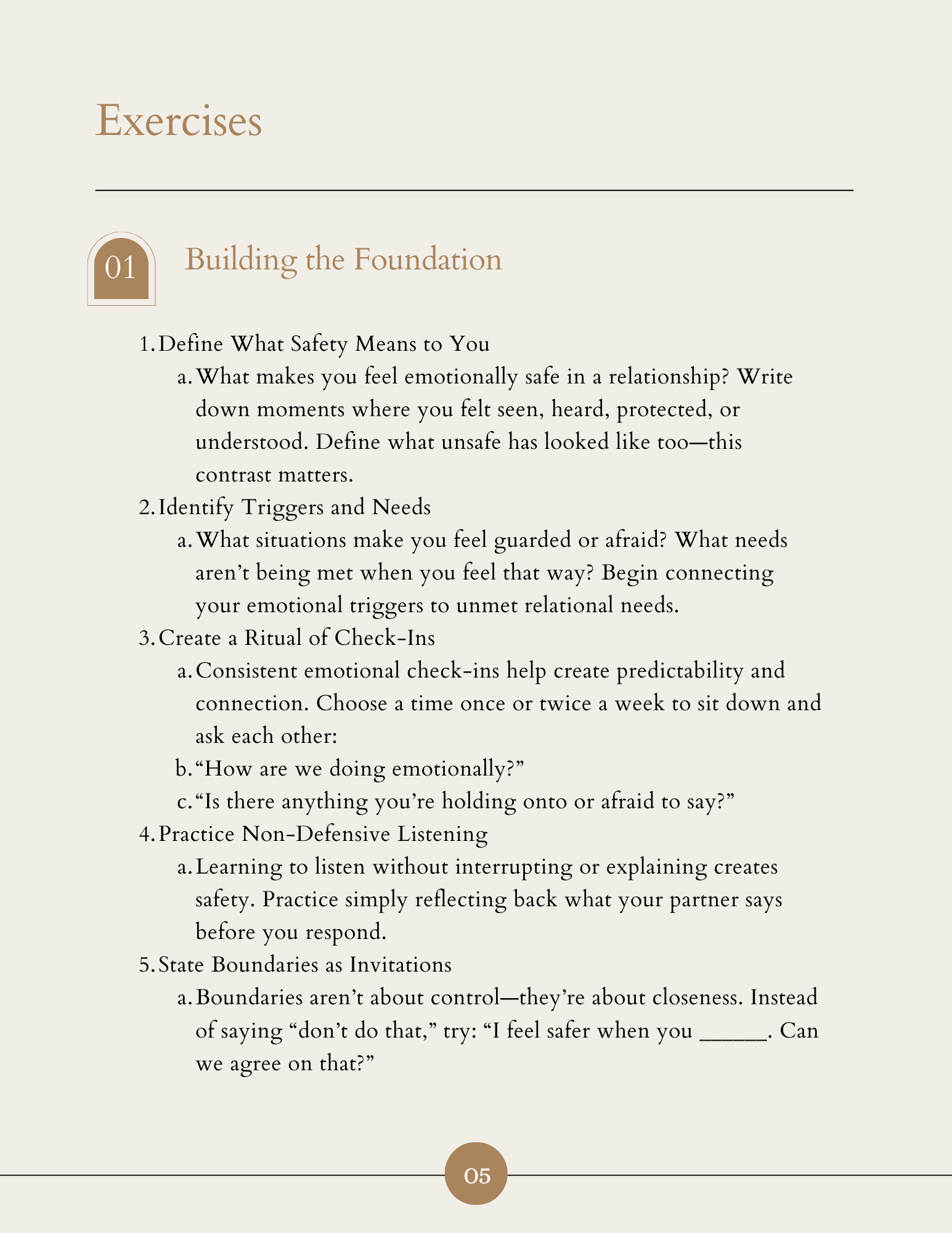 Looking to feel more secure and connected in your relationship? How to Create Safety in Your Relationship is your go-to guide for building trust, improving communication, and creating a strong emotional foundation. This easy-to-follow ebook is packed with practical tools, prompts, and worksheets for you and your partner to fill out together—helping you turn insights into action and grow closer every day.