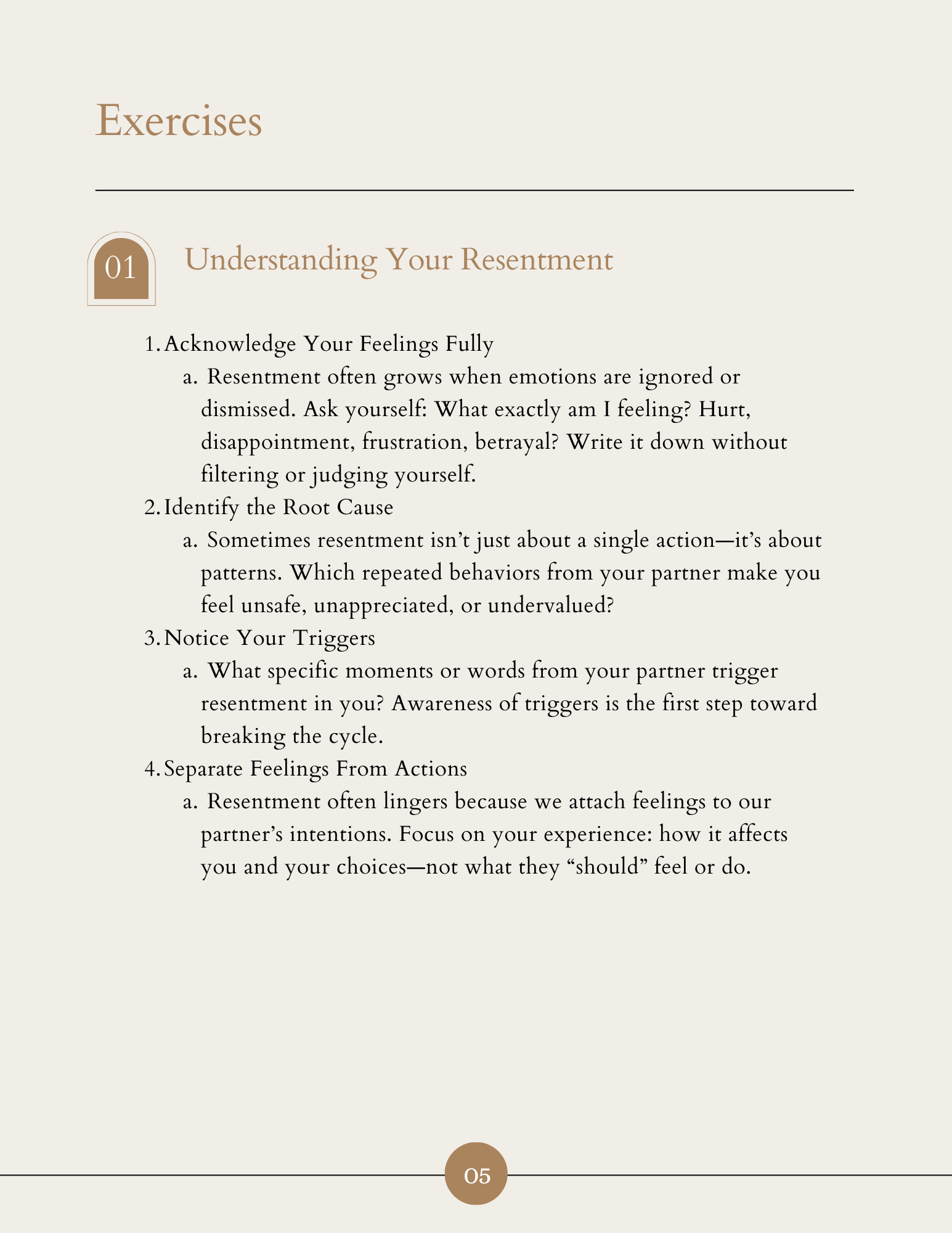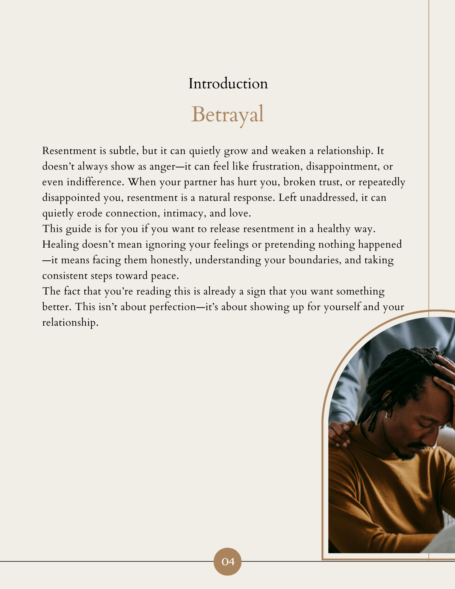 Carrying hurt and resentment can quietly chip away at your relationship. How to Heal from Resentment is a guide to help you process those feelings, release lingering frustration, and rebuild emotional closeness with your partner. With reflection prompts, practical exercises, and worksheets to work through with your partner, this ebook gives you the tools and confidence to let go of the past and create space for understanding, forgiveness, and deeper connection.