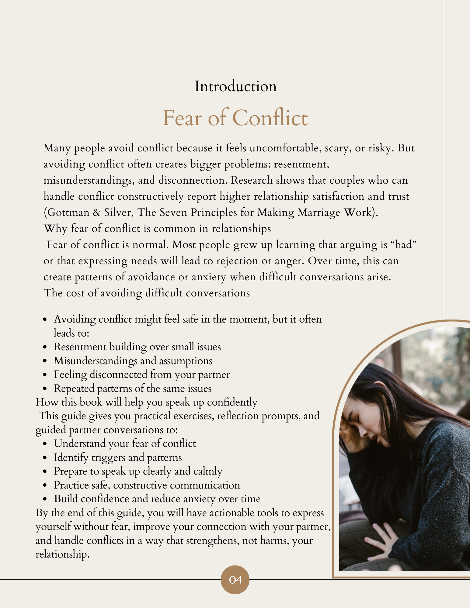 Do you avoid conflict in your relationship because you’re afraid it will lead to tension or rejection? You’re not alone. Many people struggle with the fear of speaking up, which can leave needs unmet, emotions bottled up, and distance growing between partners.
